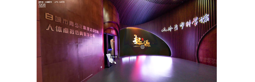 吉林省下一代爱国主义教育基地——白城医学高等专科学校人体生命科学馆,秉持“自强厚德、仁爱济世”的校训,以“生命的教育”的教育理念为指导。全馆共展出人体标本420件套,展馆配有电子设备50余台套,利用灯光、投影、VR、AR等声光电模拟仿真技术对人体进行全方位、多角度、多维度展示。