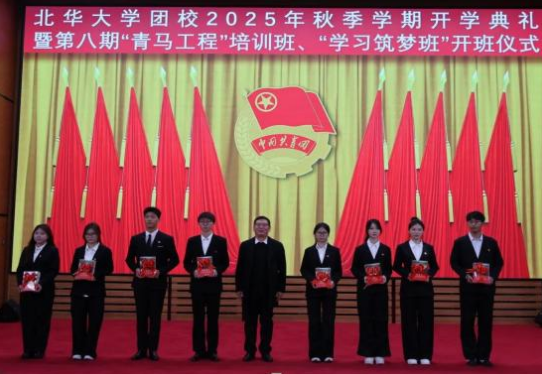 在仪式的重要环节中,校关工委负责人代表组织为第八期“青马工程”培训班、“学习筑梦”班学员代表赠书活动。此次赠书精心挑选了党史学习教育、理想信念教育类书籍,既是关工委为青年学员送上的精神食粮,也寄托着“五老”群体对青年一代“多读书、读好书,强信念、勇担当”的殷切期望。仪式同时表彰先进,学生工作部负责人为第七期“青马工程”培训班、“学习筑梦”班优秀学员代表颁发结业证书,第七期与第八期学员代表先后表态发言,分享成长感悟与奋斗决心,展现出北华大学青年昂扬向上的精神风貌。