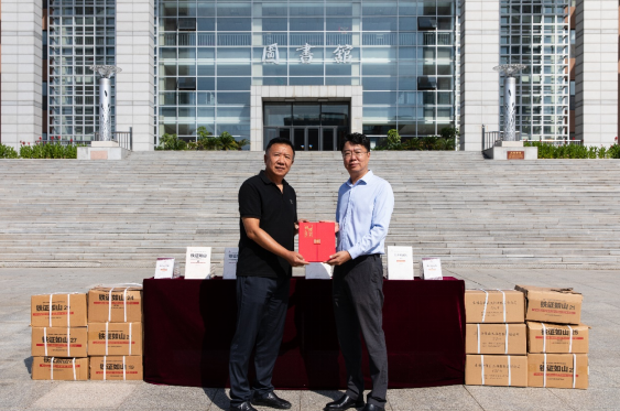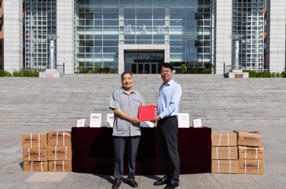 9月2日上午,为了培养师生的民族心、民族魂,继承和发扬中华传统美德,自觉维护国家的完整统一,在纪念中国人民抗日战争暨世界反法西斯战争胜利80周年来临之际,吉林出版集团译文图书经营有限公司、吉林音像出版社有限责任公司联合吉林省教育关工委,在学校图书馆广场,举行了捐赠图书及音像制品仪式。
