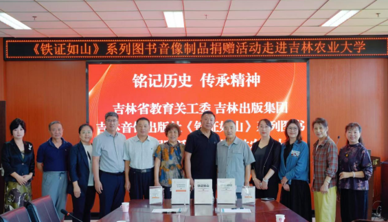 9月2日,吉林省教育关工委、吉林出版集团、吉林音像出版社向吉林农业大学捐赠《铁证如山》系列图书音像制品仪式在吉林农业大学图书馆会议室举行。吉林省教育关工委副主任孙玉刚、秘书长于青、副秘书长施惠军,吉林出版集团译文事业部副总经理郑德民、吉林音像出版社副总编辑贺谊及吉林农业大学关工委、图书馆、团委等相关同志出席仪式。