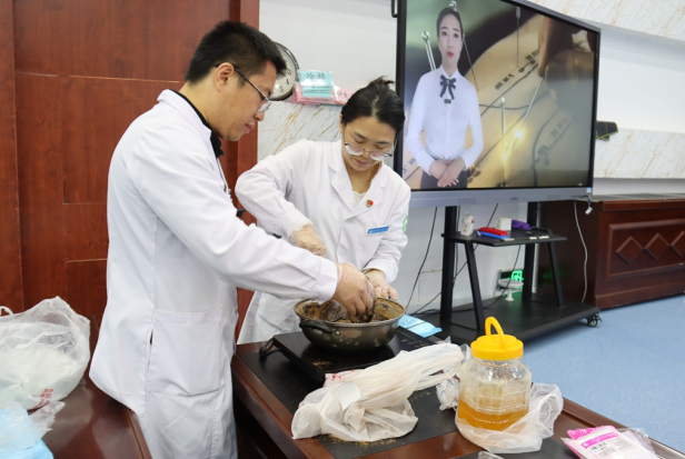 活动以长白山中医药民间故事拉开序幕。中医院医师结合动画片段,将药材起源与本地生态的关联娓娓道来;在药材辨识环节,医师与学校教师组成“双师搭档”,手持山楂、茯苓等实物,引导学生通过看纹理、嗅气味、尝味道沉浸式认知,现场提问声此起彼伏。制作环节成为课程高潮。学生分组围坐,在双师指导下揉制塑形,专注打磨丸剂圆润度,教师巡回纠正操作手法,医师同步讲解“药食同源“原理。看着一颗颗带着温度的山楂丸摆满桌面,学生们的笑容里满是成就感。