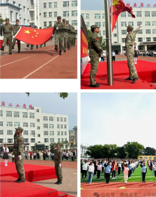 在中华人民共和国成立76周年之际,为纪念中国人民抗日战争暨世界反法西斯战争胜利80周年,2025年9月22日上午,通榆县第二小学校关工委配合学校相关部门邀请通榆县退役军人事务局退役军人走进学校举行庄严的升旗仪式。