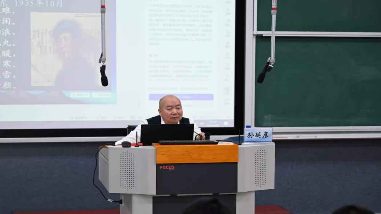 孙廷彦老师紧扣习近平总书记关于长征精神的重要论述,以翔实史料系统讲述了长征的历史背景、重大战役与伟大意义。他重点回顾了湘江之战、遵义会议、四渡赤水、飞夺泸定桥等关键事件,以“3万∶40万”的兵力对比诠释四渡赤水的军事奇迹,生动再现了红军将士不怕牺牲、百折不挠的英雄气概。孙老师勉励青年学子继承长征精神,练就过硬本领,做新时代的奋斗者和追梦人。