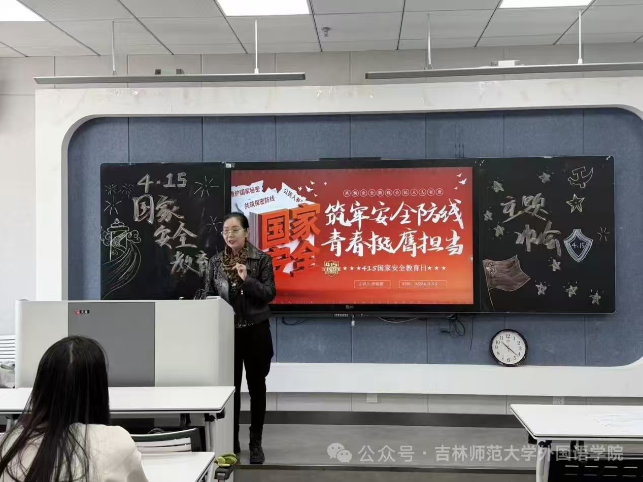 为深入践行总体国家安全观,以“青心护航”育人工程为统领,筑牢青年学生国家安全思想防线,在第11个全民国家安全教育日来临之际,外国语学院党委和关工委组织全院各班级学生举办4·15全民国家安全教育日主题班会,院关工委常务副主任李月华副教授出席指导。